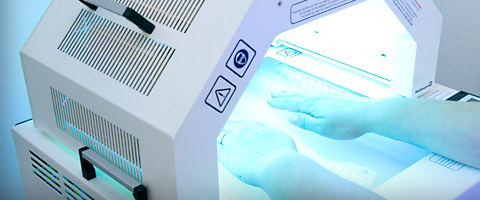 Selektive UV-Behandlungen (Ganzkörperkabine mit UVB 311nm, UVA, Hand– und Fussgerät für PUVA nach Vitamin-A-Bad) |